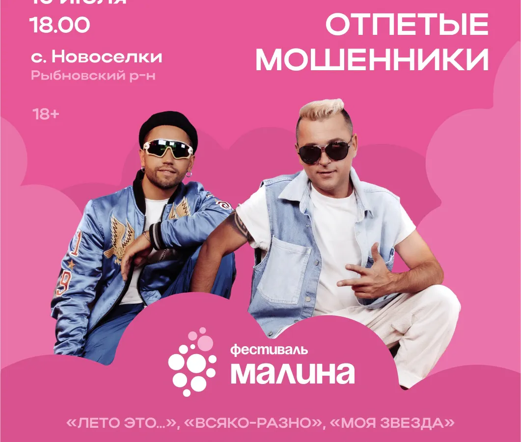 Стало известно о том, что 13 июля 2024 года в селе Новоселки Рыбновского района пройдет яркий летний фестиваль «Малина». В рамках мероприятия запланировано выступление популярной группы «Отпетые мошенники». Об этом сообщили организаторы на официальной странице фестиваля в социальной сети «ВКонтакте».